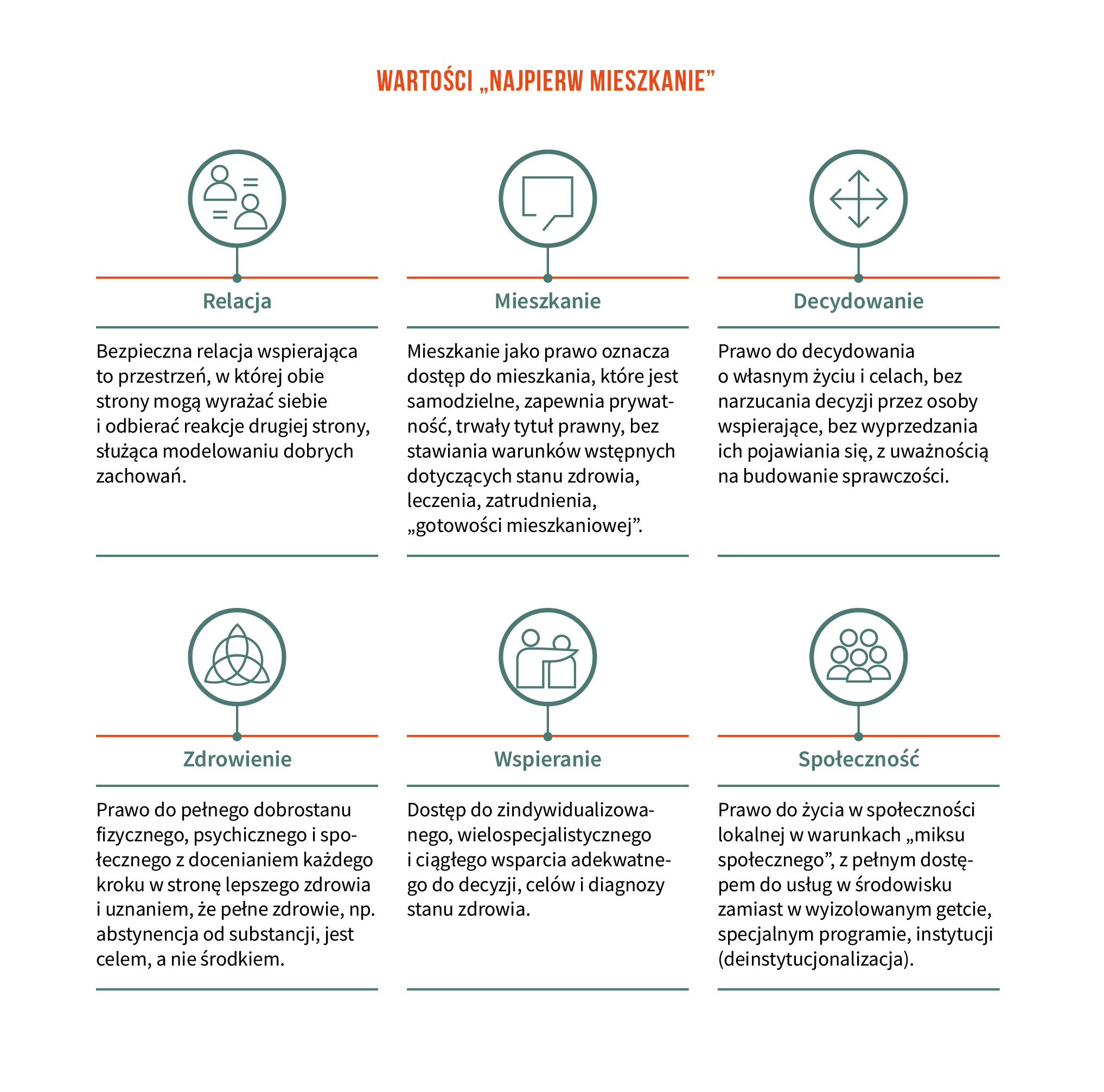 Pracujemy zgodnie z metodą "Najpierw mieszkanie", zapewniając ciągłe wsparcie osobom, które doświadczały bezdomności. Podstawą dającą możliwość powrotu do zdrowia, aktywnego życia osobistego i społecznego jest dostęp do mieszkania. Do miejsca, w którym czujemy się “u siebie”, w domu i bezpiecznie. Pracujemy z osobami zapewniając profesjonalne wsparcie, m.in. terapeutów i psychologów oraz pracowników wspierających świadczone zgodnie z wartościami metody “Najpierw mieszkanie”.